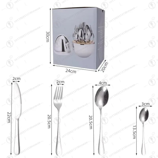 High-quality 24-piece gold and silver egg-shaped western tableware set stainless steel tableware set premium tableware set