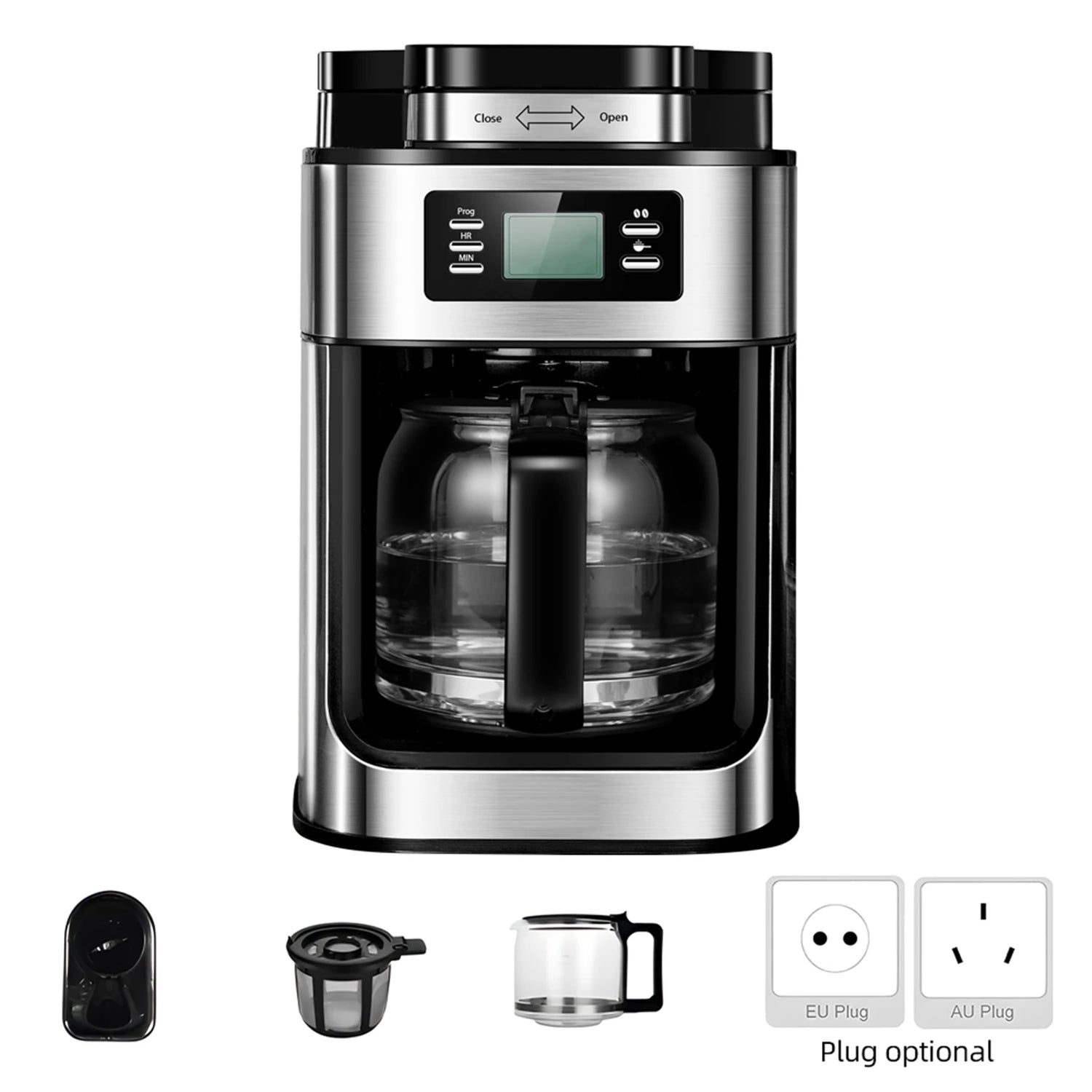 Programmable Coffee Maker with Timer 1050 Watts 1L Large Capacity 2-8 CupsDrip Coffee Maker Grind Brew Automatic Coffee Machine